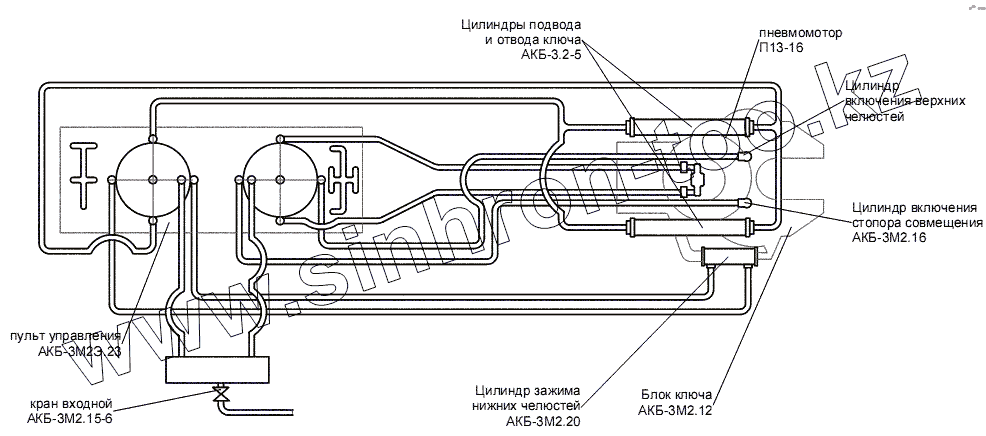 Каталог запасных частей к технике: Ижнефтемаш Ключ буровой АКБ-3М2. Пневматическая схема ключа АКБ-3М2