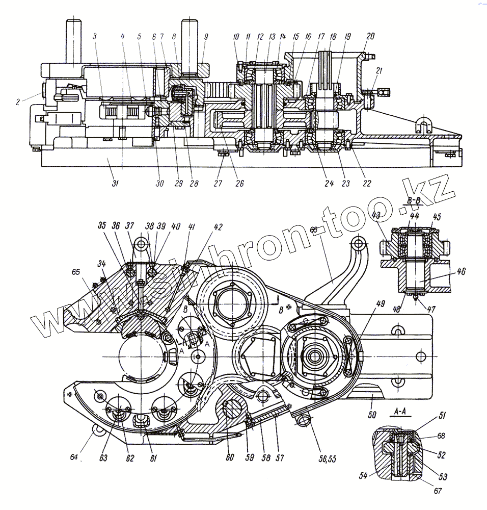 Каталог запасных частей к технике: Ижнефтемаш Ключ буровой АКБ-3М2. Редуктор ключа АКБ-3М2.12