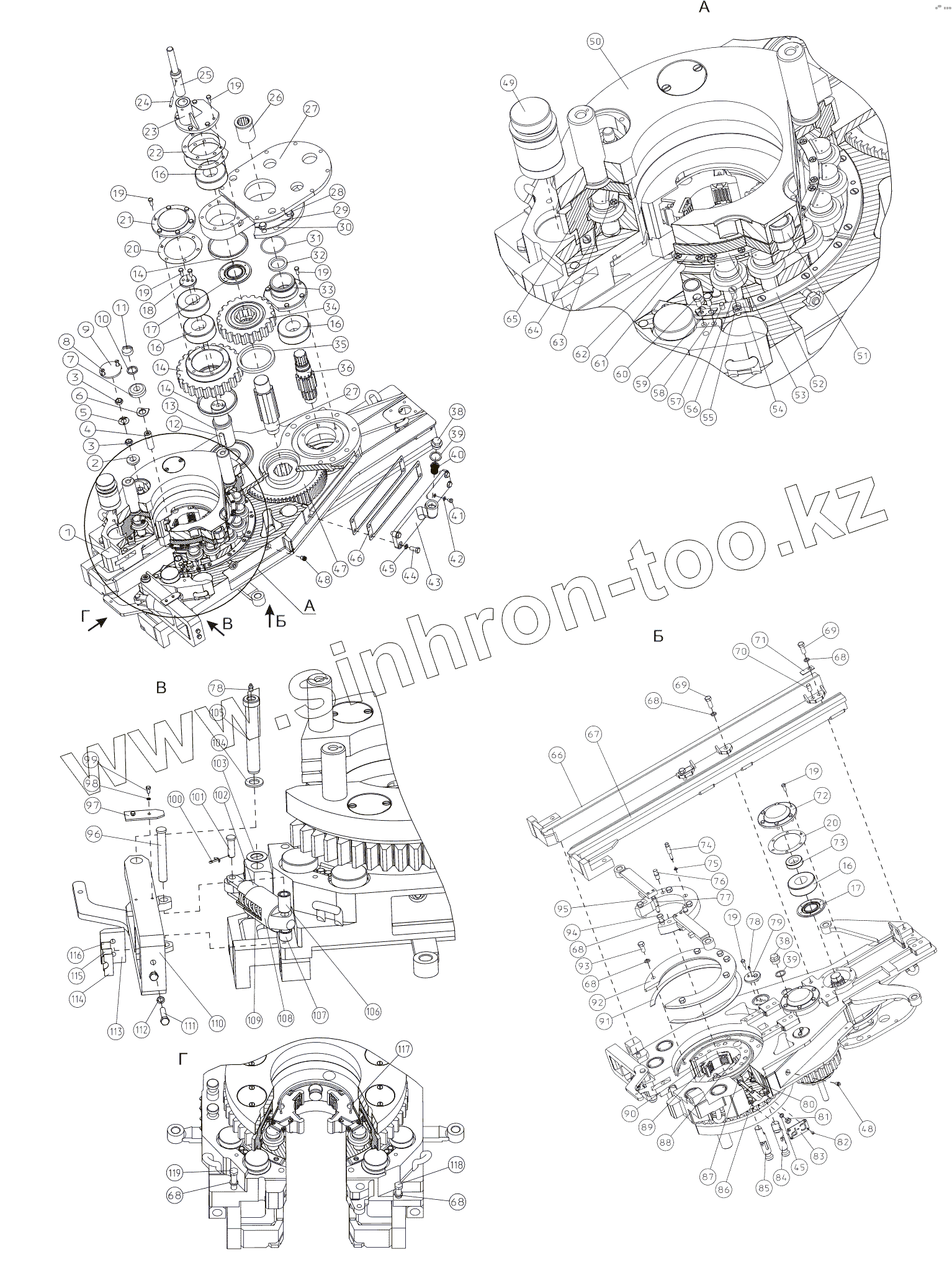Каталог запасных частей к технике: Ижнефтемаш Ключ буровой АКБ-4. Редуктор ключа АКБ-4.12