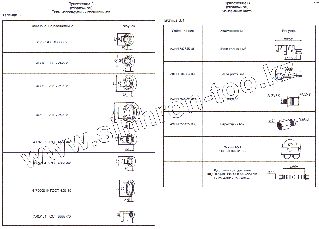 Каталог запасных частей к технике: Ижнефтемаш КПТ. Типы подшипников и монтажные части