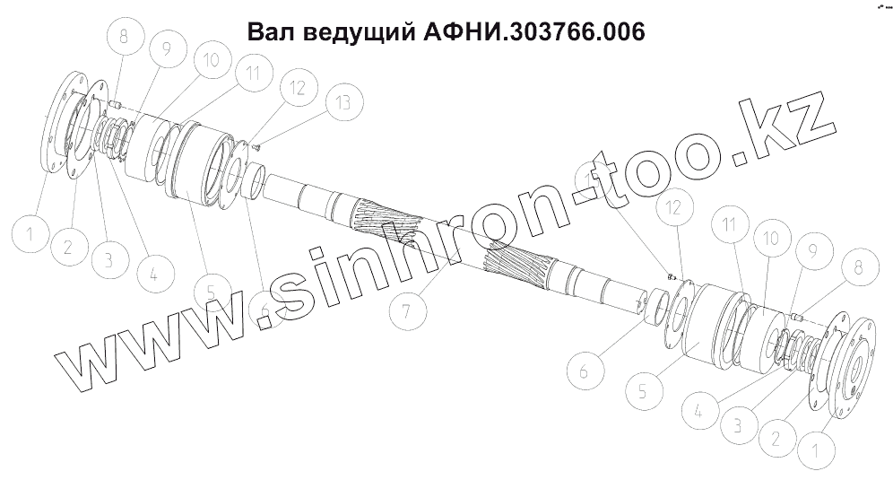 Каталог запасных частей к технике: Ижнефтемаш ПНШ-60-2,1-25. Вал ведущий АФНИ.303766.006
