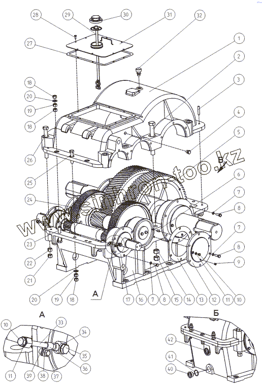 Каталог запасных частей к технике: Ижнефтемаш ПНШ-80. Редуктор РП-450 ДПКР.301123.001