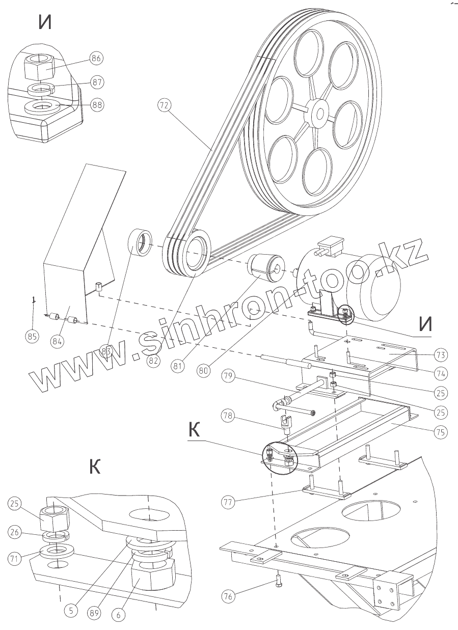 Каталог запасных частей к технике: Ижнефтемаш ПНШТ-60-3-31,5. Крепление двигателя