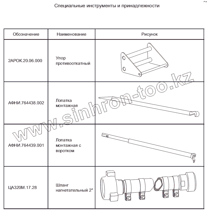 Каталог запасных частей к технике: Ижнефтемаш УС-50х14Кр. Специальные инструменты и принадлежности
