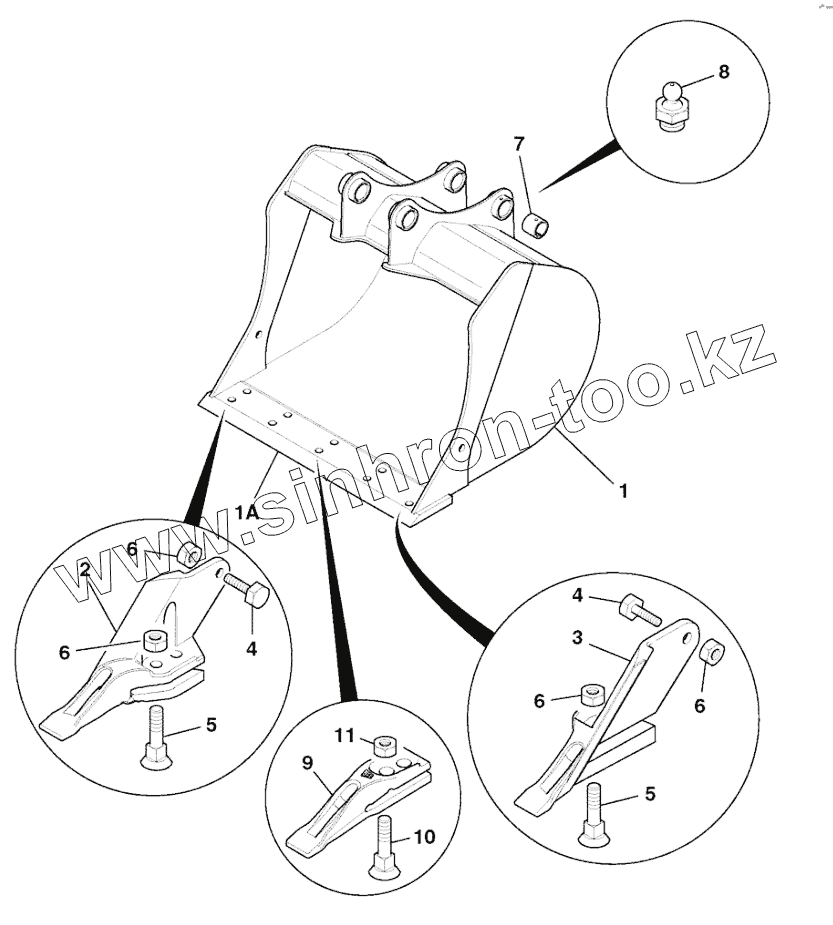 Каталог запасных частей к технике: JCB-3CX (Часть 1). BUCKET HEAVY DUTY BOLT ON TEETH
