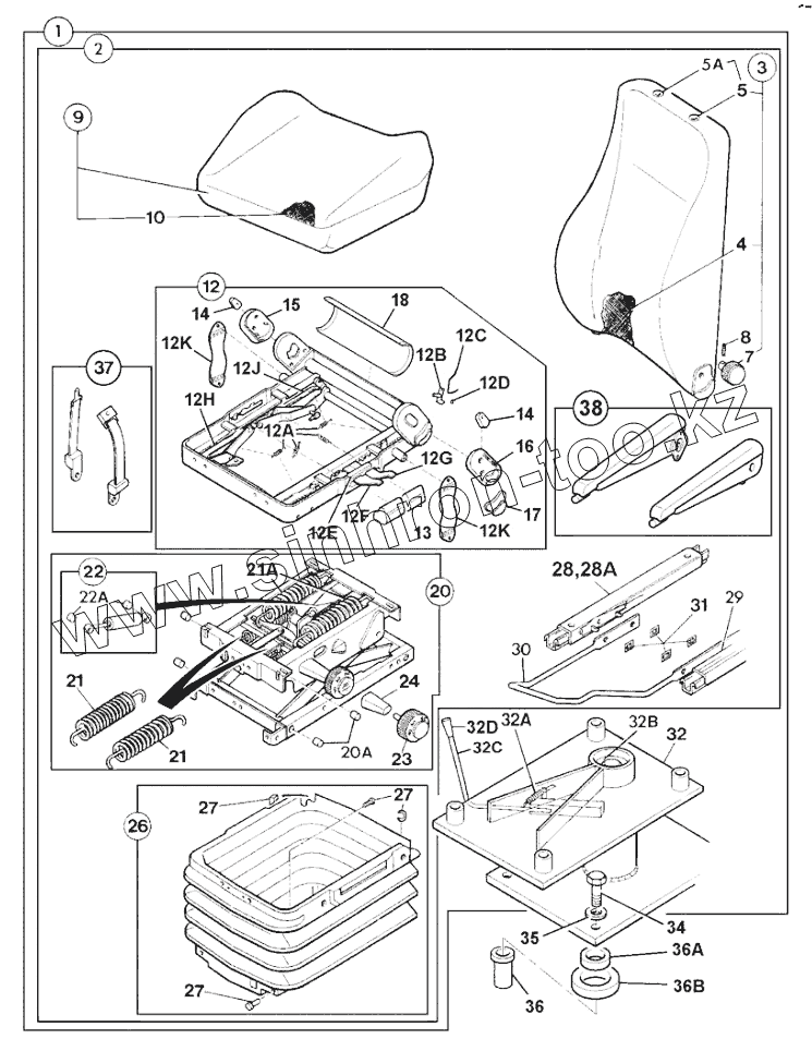 Каталог запасных частей к технике: JCB-3CX (Часть 1). SEAT, SUSPENSION