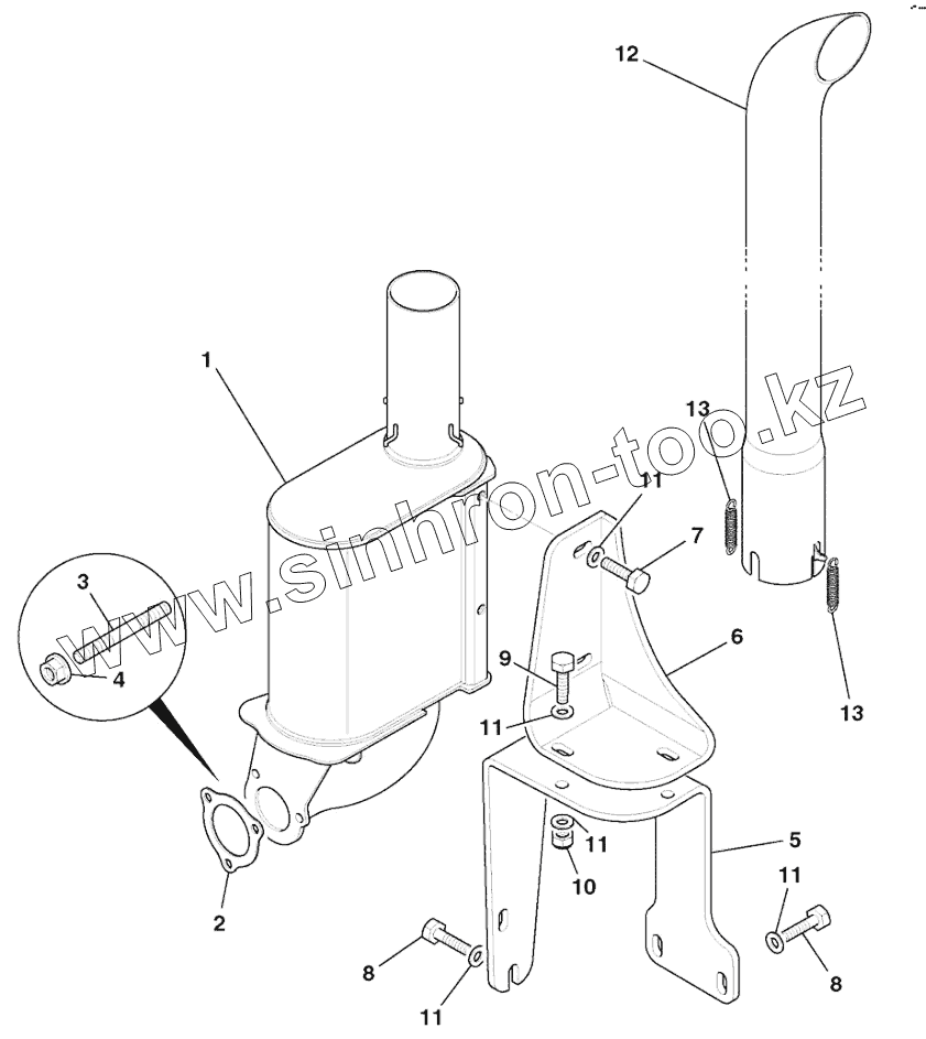 Каталог запасных частей к технике: JCB-3CX (Часть 2). SILENCER & EXTENSION TURBO TIER 3