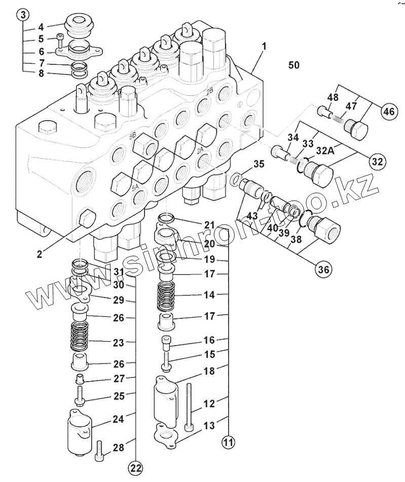 Valve 6 spl, excavator, JCB c/m low leak