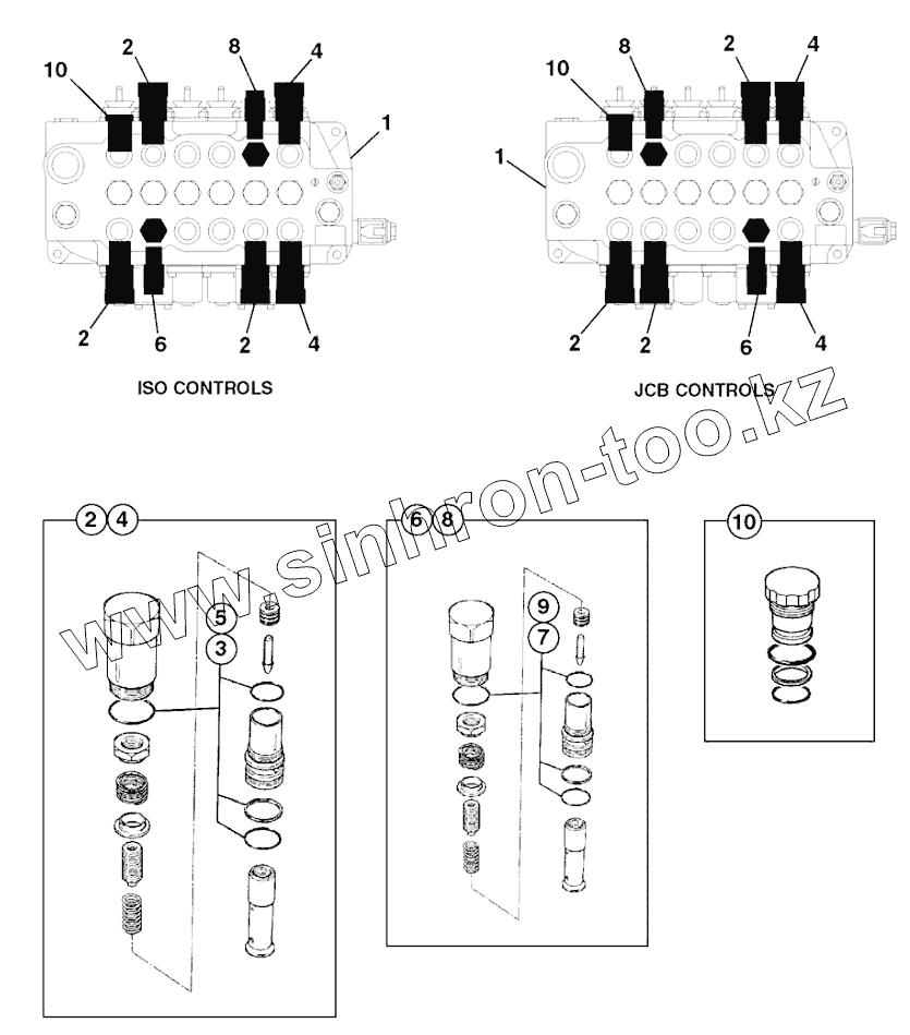 Каталог запасных частей к технике: JCB-3CX (Часть 2). VALVE-EXCAVATOR SIDESHIFT, RELIEF