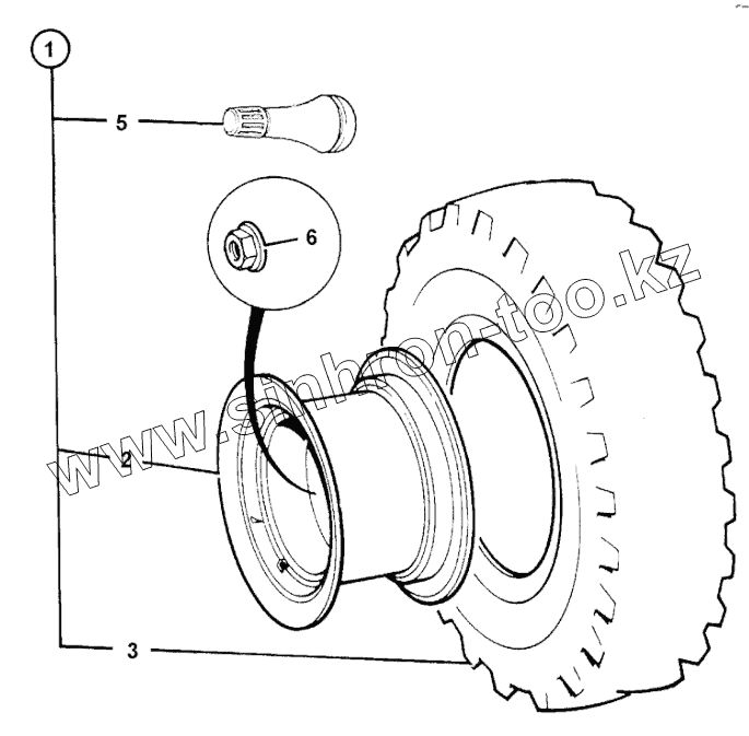 Каталог запасных частей к технике: JCB-3CX (Часть 2). WHEEL & TYRE ASSEMBLY REAR, 2WS 21LX24