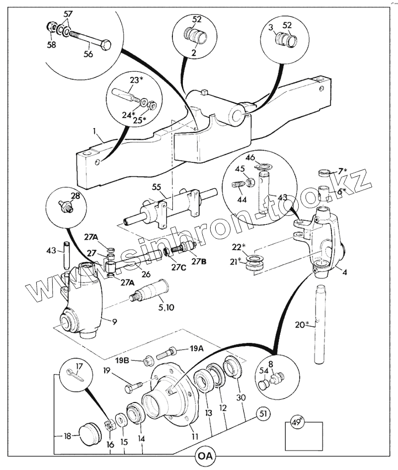 Каталог запасных частей к технике: JCB-3CX (Часть 2). AXLE ASSEMBLY, 2WS 2WD STEERING
