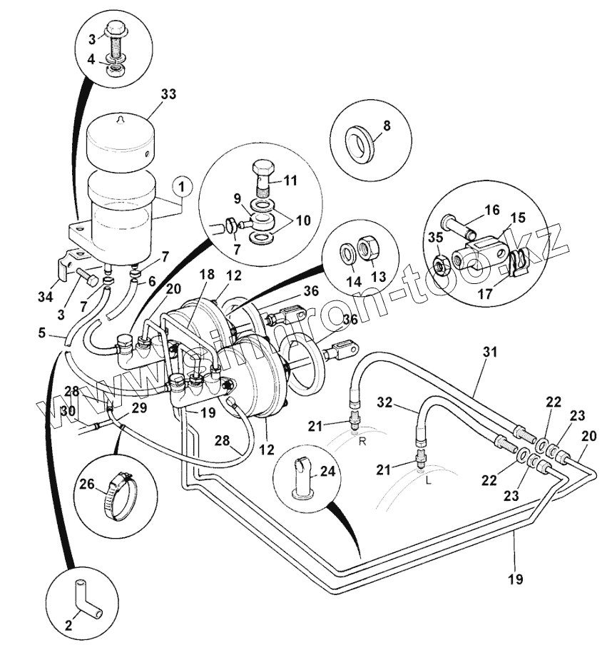 Каталог запасных частей к технике: JCB-3CX (Часть 2). BRAKE, SYSTEM SERVO