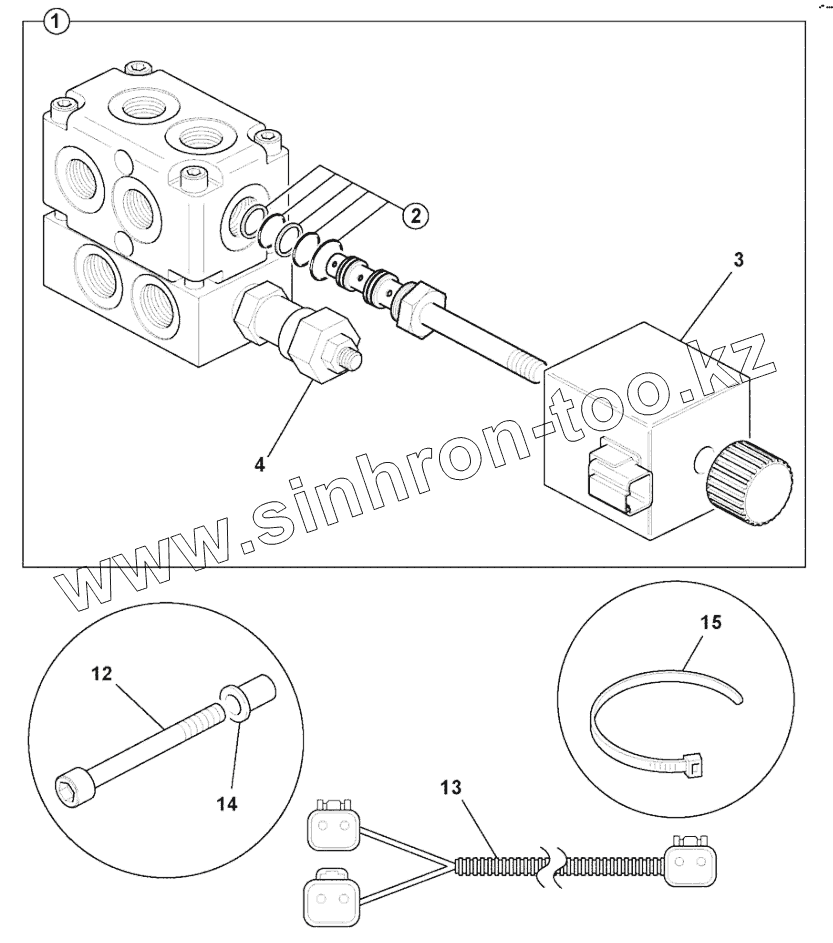 Каталог запасных частей к технике: JCB-3CX (Часть 2). VALVE SOLENOID, DIVERTER POWER SIDESHIFT