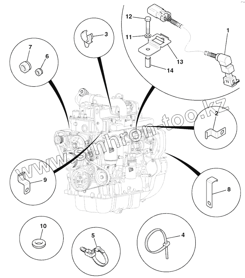 Каталог запасных частей к технике: JCB-3CX Super (Часть 1). ENGINE SHUT-OFF SOLENOID LINK