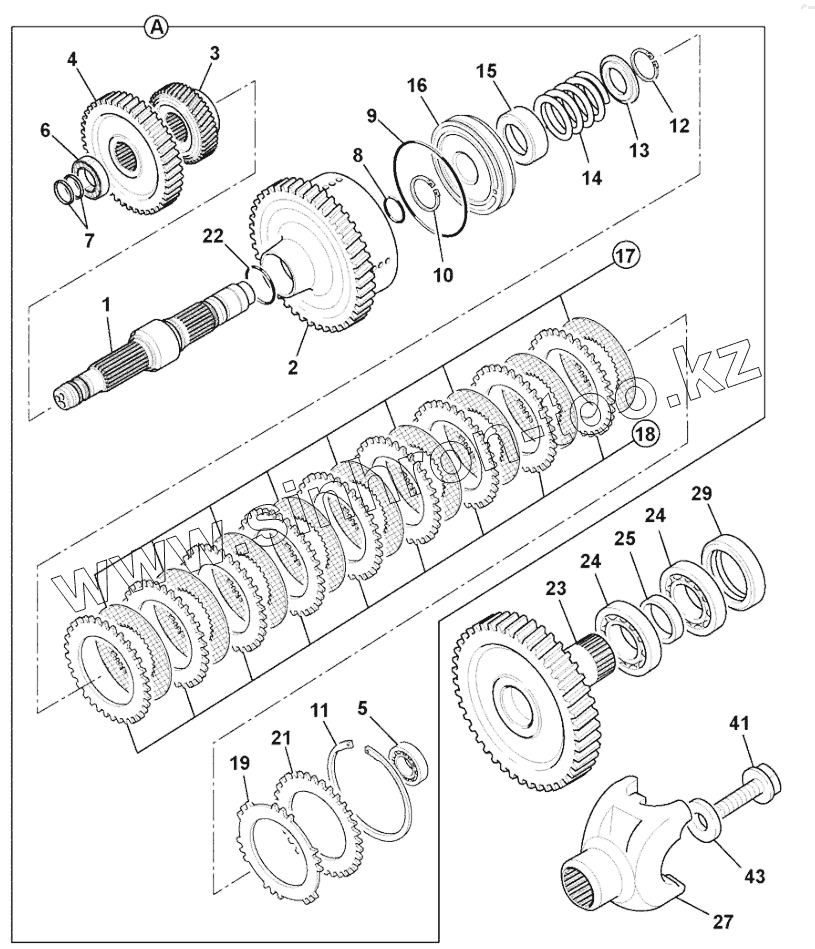 Каталог запасных частей к технике: JCB-3CX Super (Часть 2). SHAFT ASSEMBLY MAINSHAFT CLUTCH