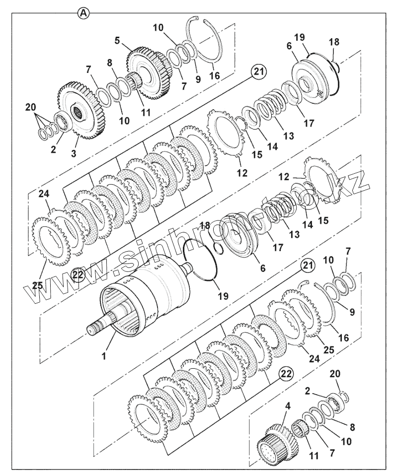 Каталог запасных частей к технике: JCB-3CX Super (Часть 2). SHAFT ASSEMBLY REVERSER CLUTCH