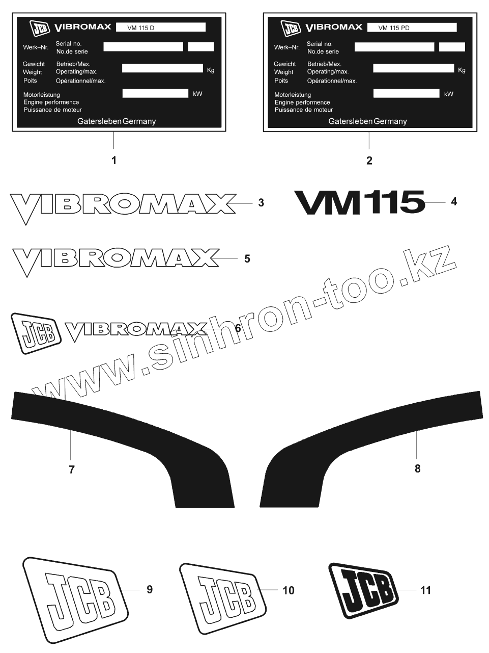 Каталог запасных частей к технике: JCB VM-115 D/PD. Таблички/Decals (VM115D/PD)