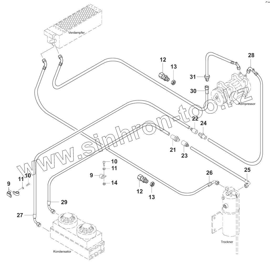 Каталог запасных частей к технике: JCB VM-115 D/PD. Трубопроводы кондиционера/Hose–pipe – Air conditioning