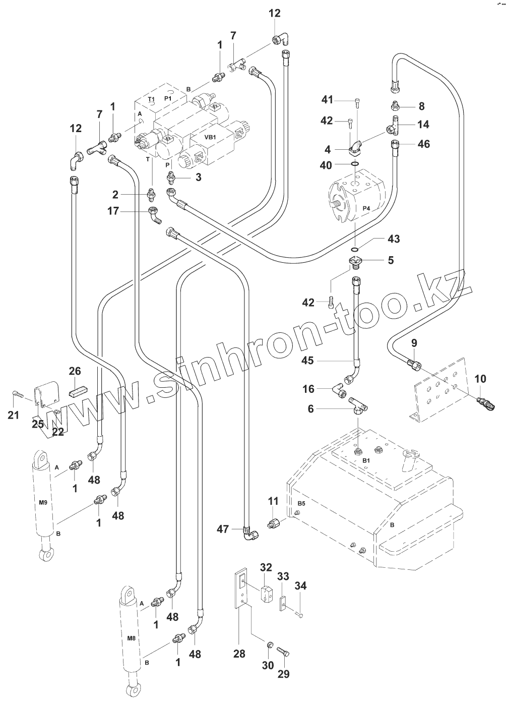 Каталог запасных частей к технике: JCB VM-132D/PD. Гидросистема отвала/Hydraulic-Leveling blade