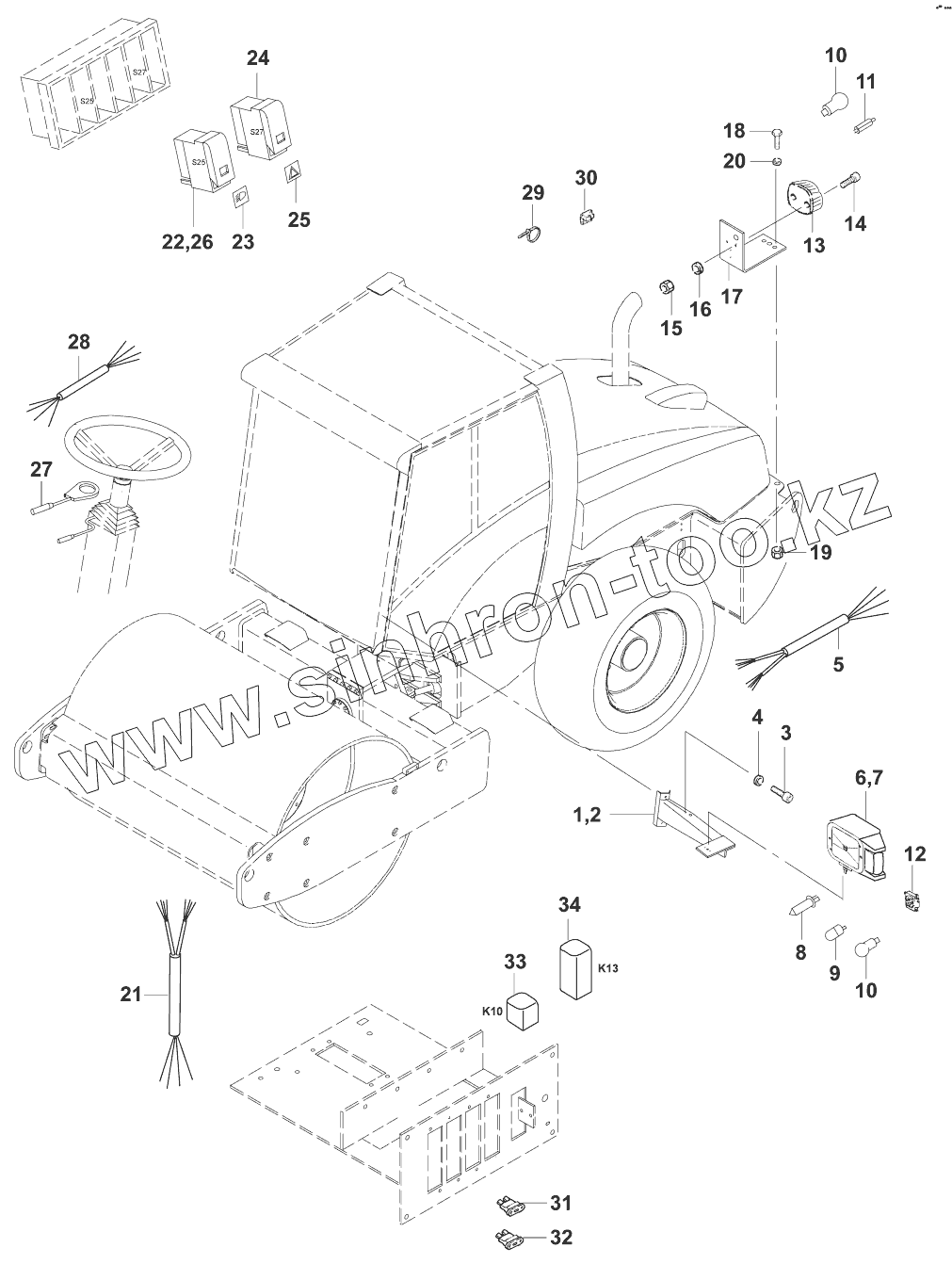 Каталог запасных частей к технике: JCB VM-132D/PD. Освещение (с кабиной)/Lighting StVZO-with cab