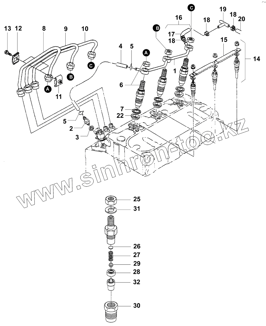 Каталог запасных частей к технике: JCB VM-1500-1601100. Установка форсунок