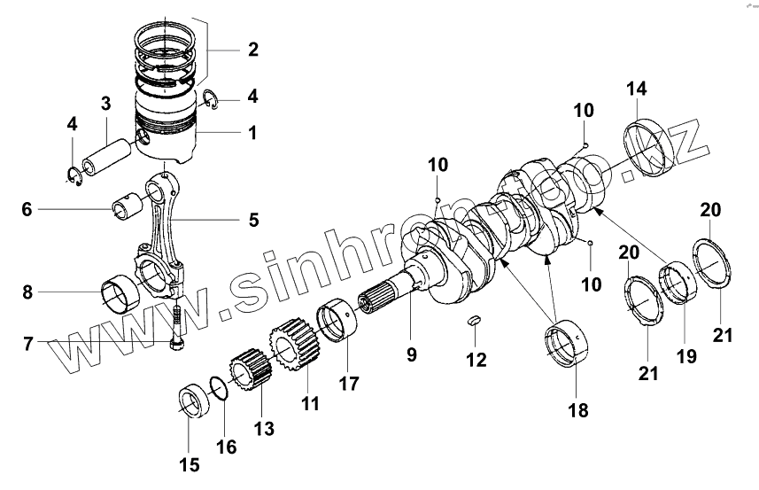 Каталог запасных частей к технике: JCB VM-1500-1601100. Вал коленчатый, поршень