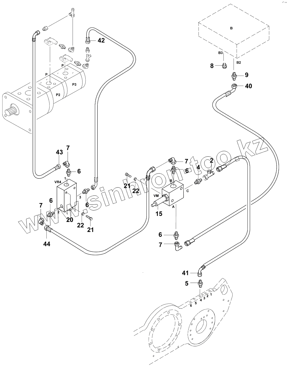Каталог запасных частей к технике: JCB VM-1500-1601300. Трубопроводы