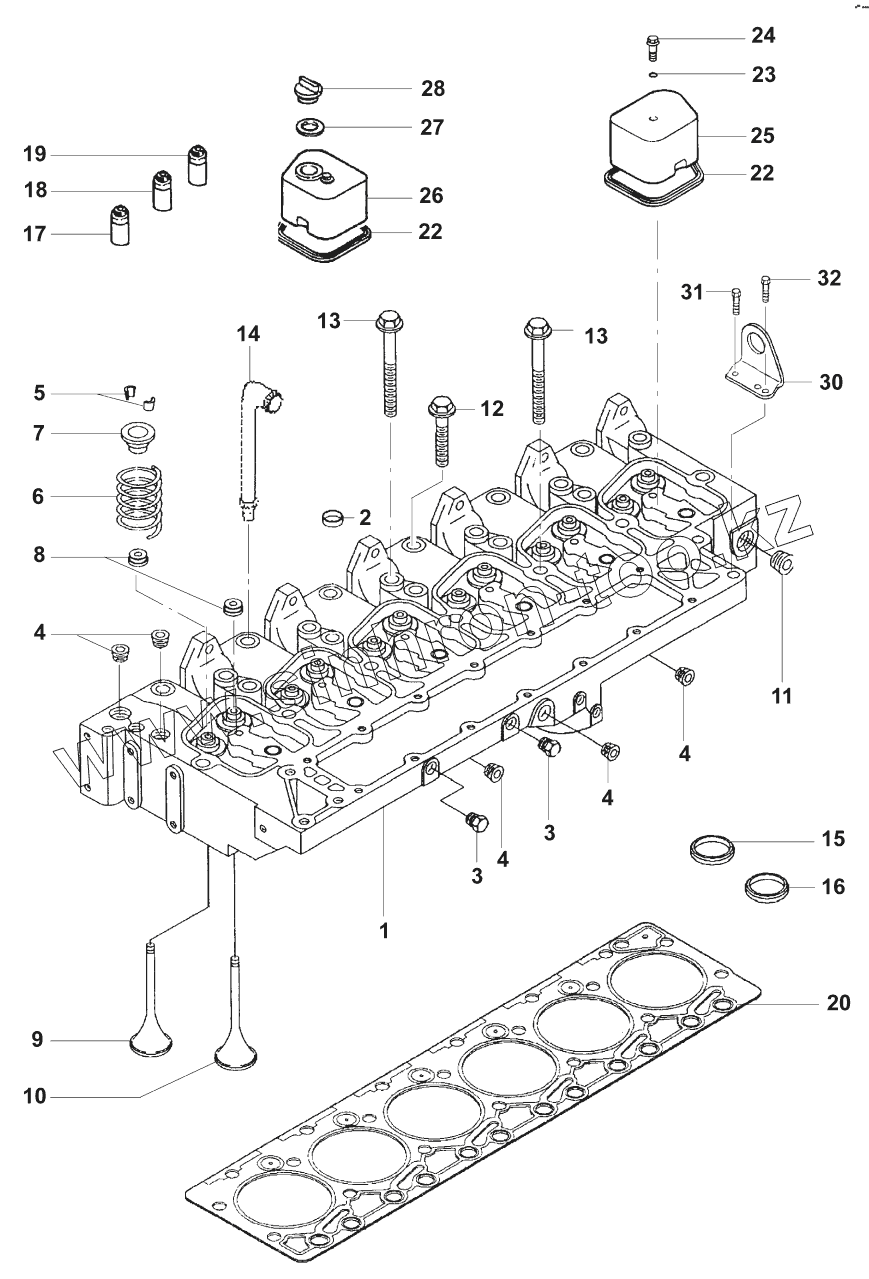 Каталог запасных частей к технике: JCB VM-200D/PD. Головка блока цилиндров