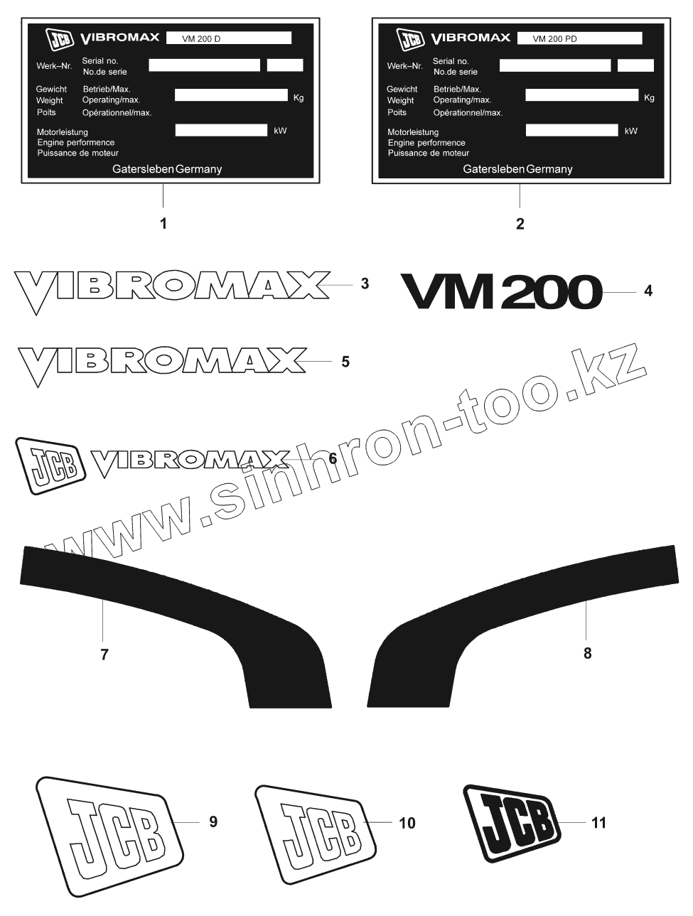 Каталог запасных частей к технике: JCB VM-200D/PD. Таблички