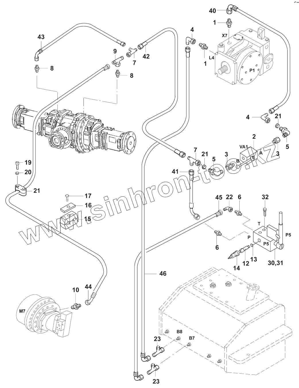 Каталог запасных частей к технике: JCB VM-200D/PD. Тормозные трубопроводы
