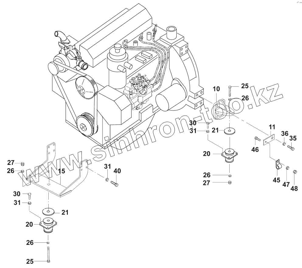 Каталог запасных частей к технике: JCB VM-46D/PD. Подвеска двигателя/Engine suspension