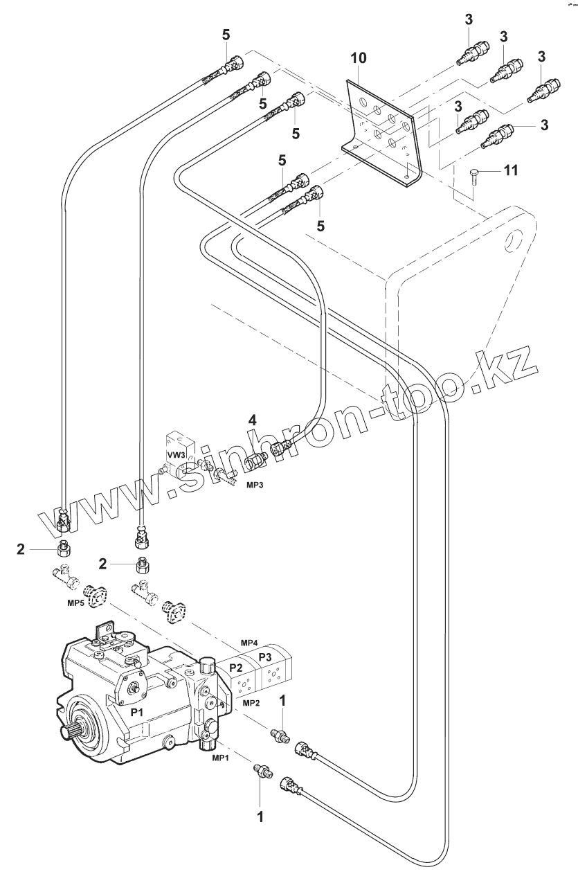 Каталог запасных частей к технике: JCB VM-46D/PD. Трубопроводы/Hydraulic measuring points