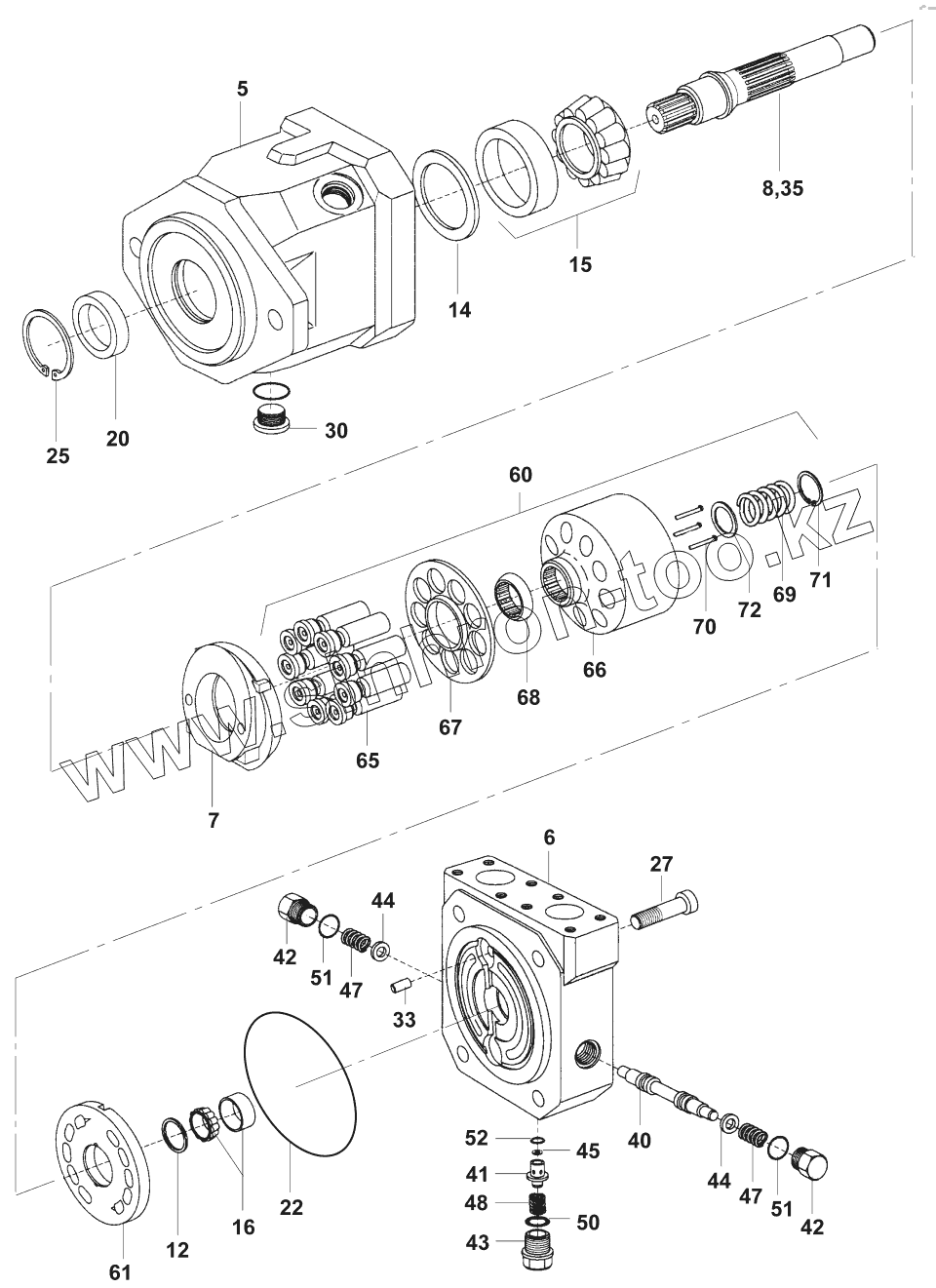 Каталог запасных частей к технике: JCB VM-75D/PD. Гидромотор/Fixed displacement hydro motor