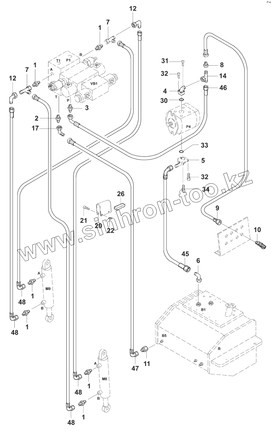 Гидросистема отвала/Hydraulic-Leveling blade