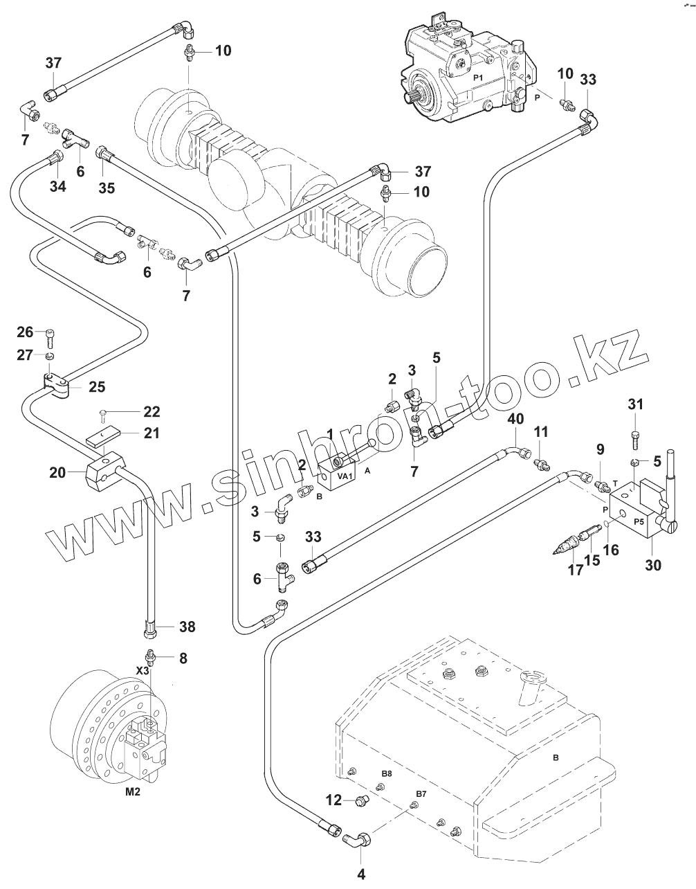 Каталог запасных частей к технике: JCB VM-75D/PD. Тормозные трубопроводы/Brake lines