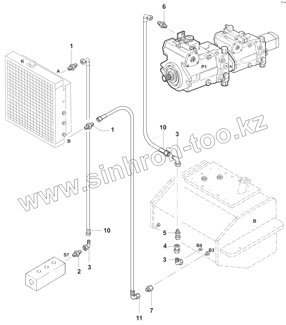 Каталог запасных частей к технике: JCB VM-75D/PD. Трубопроводы охлаждения/Cooler line
