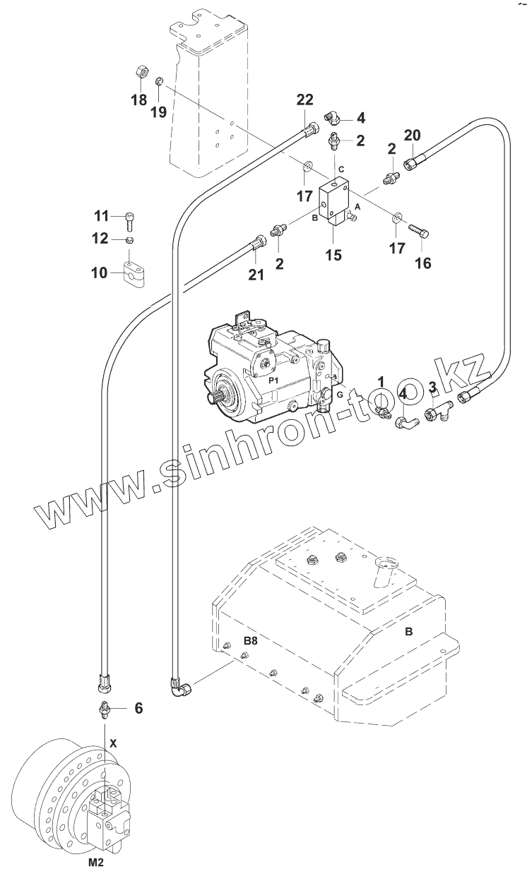 Каталог запасных частей к технике: JCB VM-75D/PD. Трубопроводы управления/Control line
