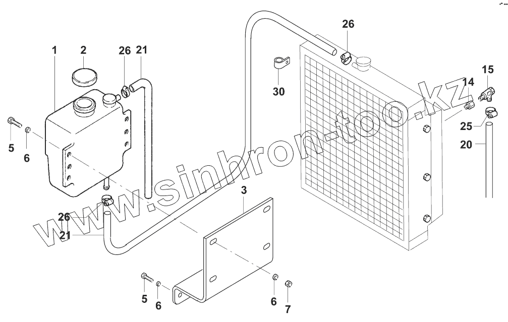 Каталог запасных частей к технике: JCB VM-75D/PD. Водяной бак/Water tank