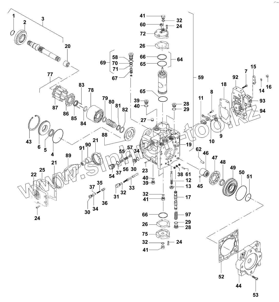 Каталог запасных частей к технике: JCB VMТ-270/280. Гидронасос/Variable displacement hydro pump