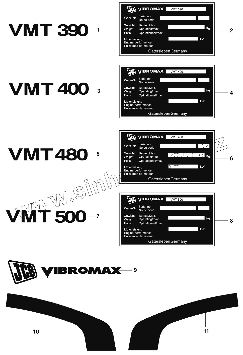 Каталог запасных частей к технике: JCB VMТ-390/400 (480/500). Таблички/Decals