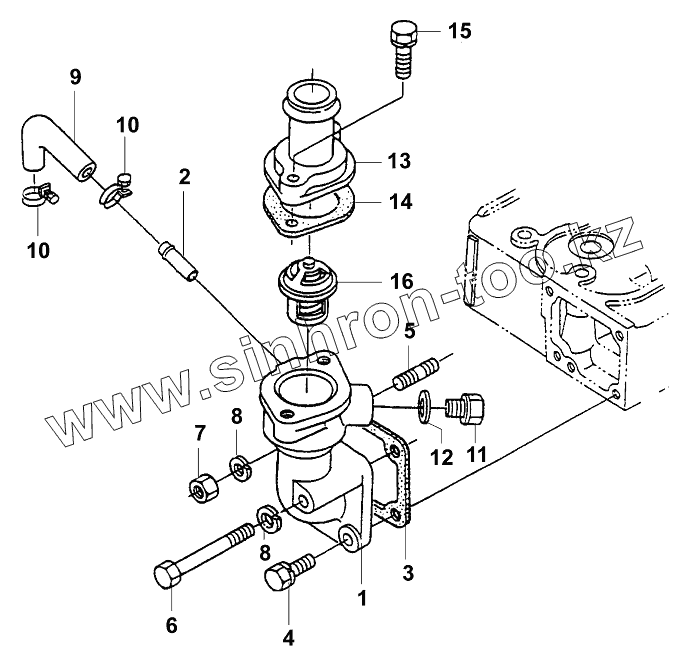 Каталог запасных частей к технике: JCB VMТ-390/400 (480/500). Термостат/Water flange and thermostat