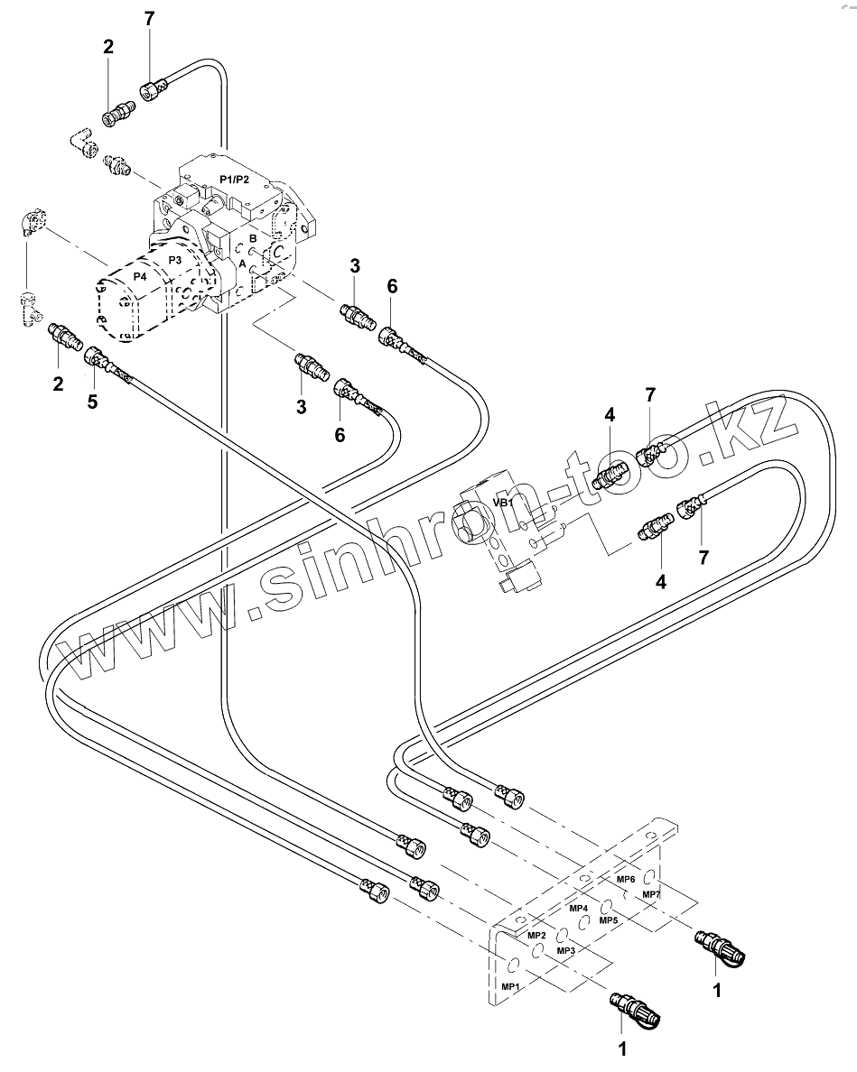 Каталог запасных частей к технике: JCB VMТ-390/400 (480/500). Трубопроводы/Hydraulic measuring points