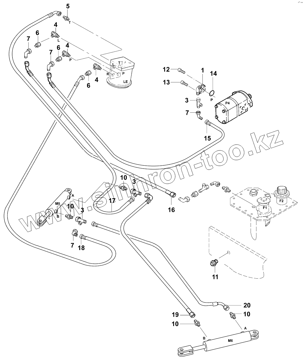 Каталог запасных частей к технике: JCB VMТ-390/400 (480/500). Трубопроводы управления/Steering