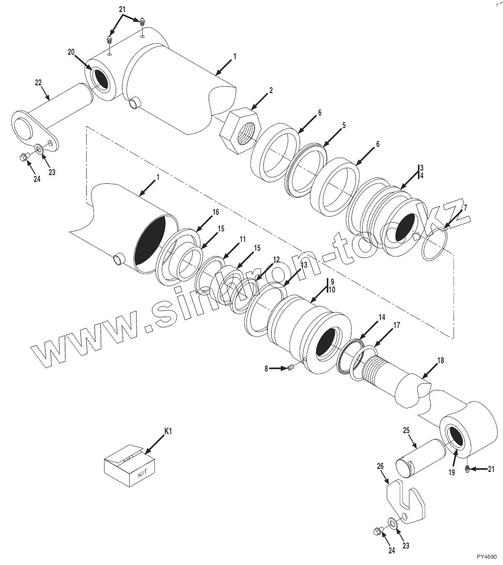 Каталог запасных частей к технике: JLG G10-43A. Compensating Cylinder S/N 0160008020 thru 0160033297