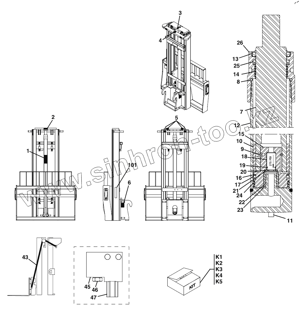Каталог запасных частей к технике: JLG G10-43A. Ft Standard Mast S/N 0160037671 & After