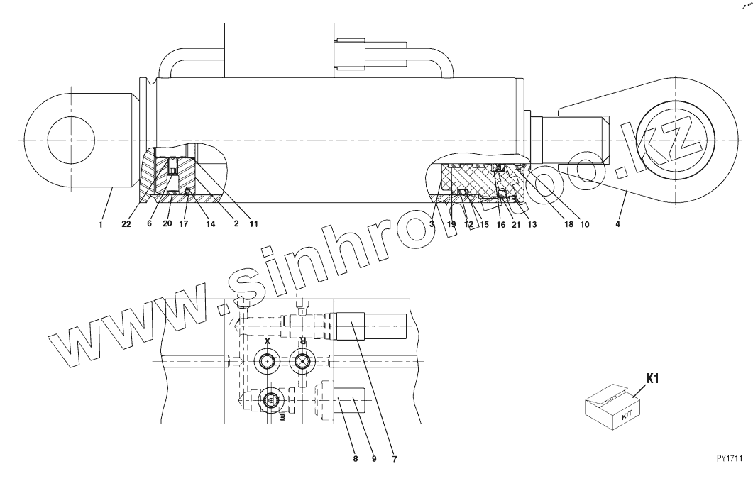 Каталог запасных частей к технике: JLG G9-43A. 72” 90 Degree Swing Carriage Cylinder