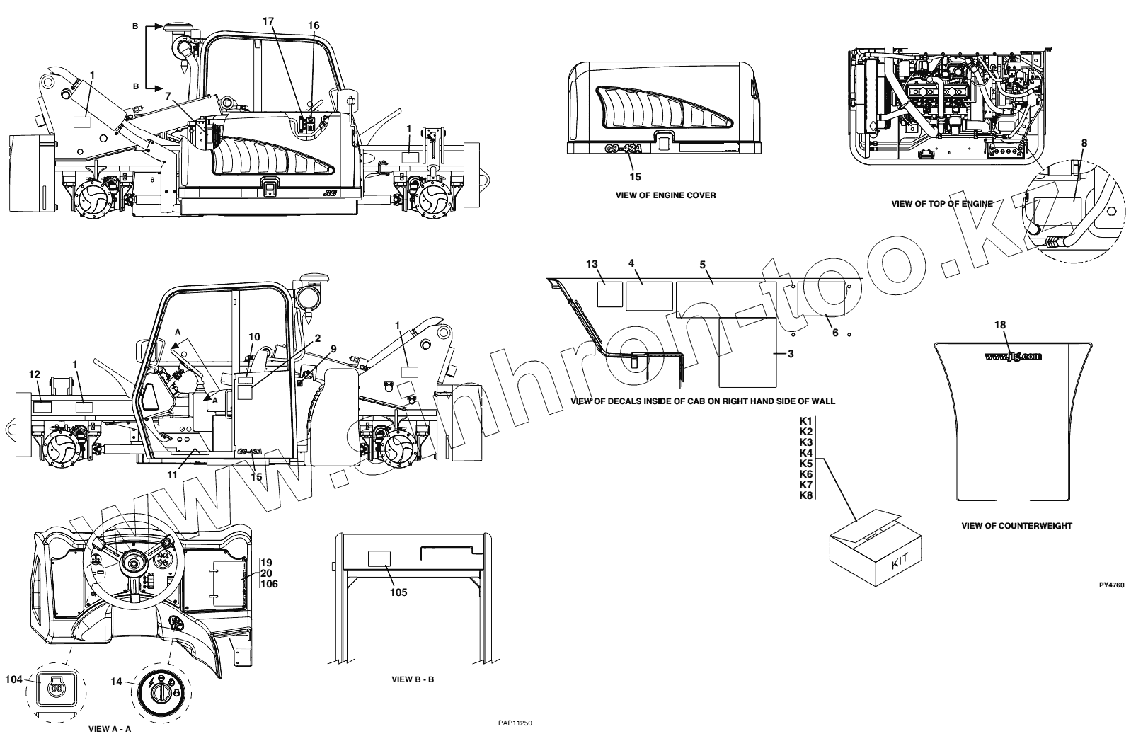 Каталог запасных частей к технике: JLG G9-43A. Cab & Frame Decals