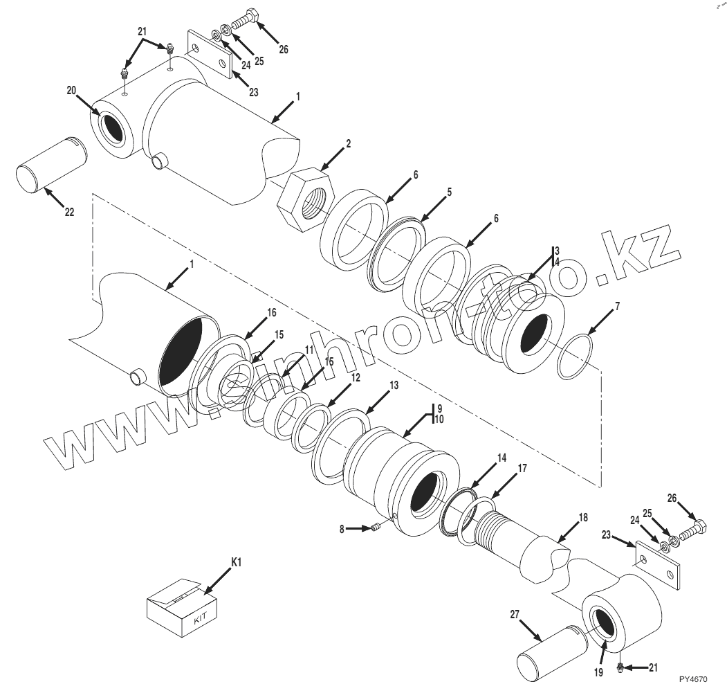 Каталог запасных частей к технике: JLG G9-43A. Compensating Cylinder S/N 0160007176 thru 0160007822