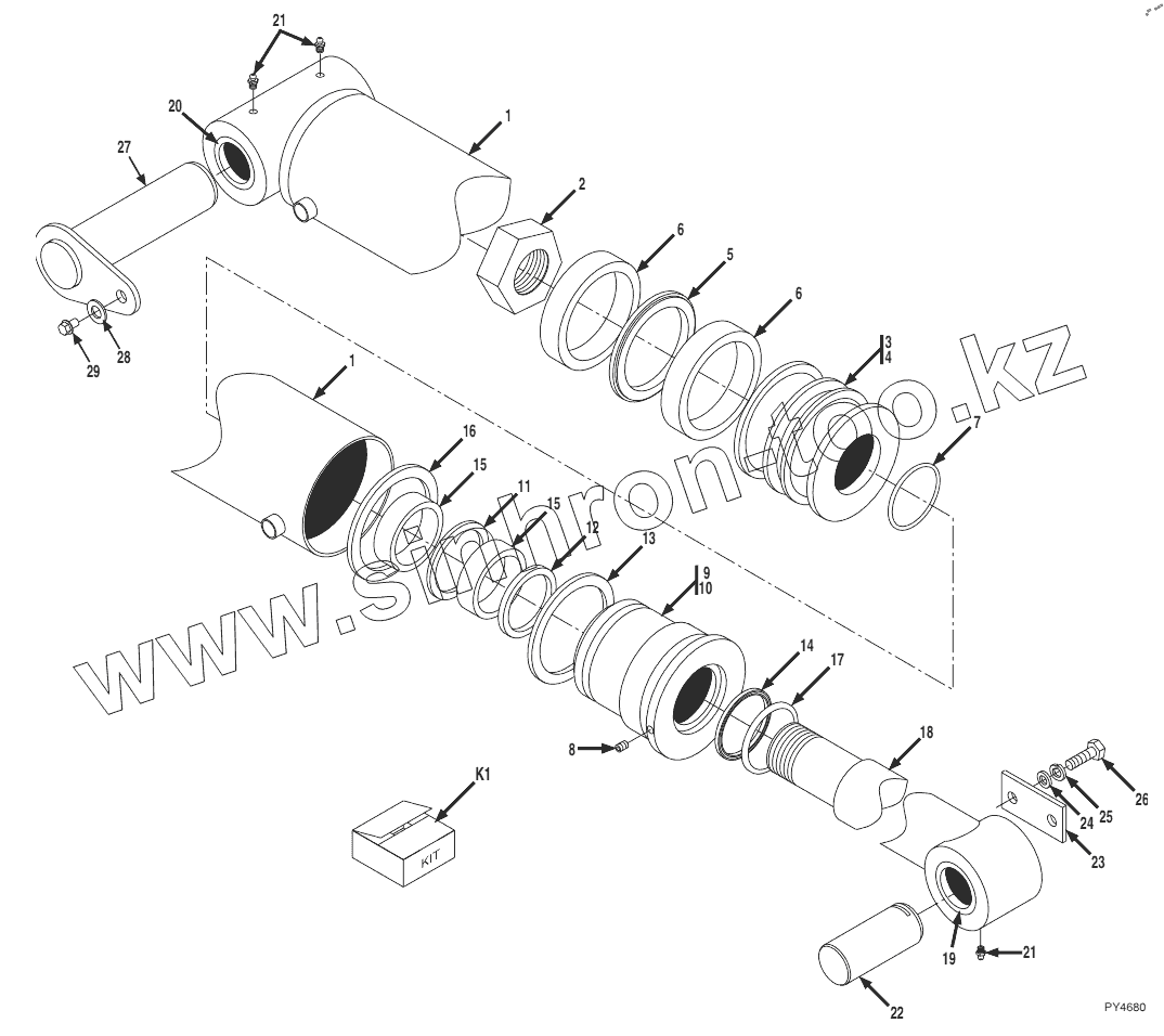 Каталог запасных частей к технике: JLG G9-43A. Compensating Cylinder S/N 0160007869 thru 0160007970