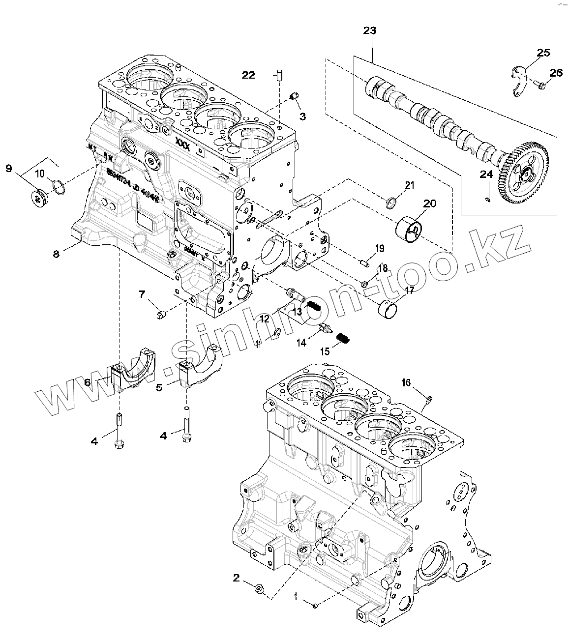 Каталог запасных частей к технике: John Deere JD-315SK(часть 1). Блок цилиндров